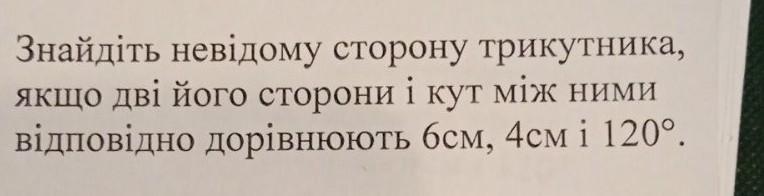 6²+4²-2•6•4•1/2 або 0,5 = 36 + 16 = 52; 52-24 = 28
