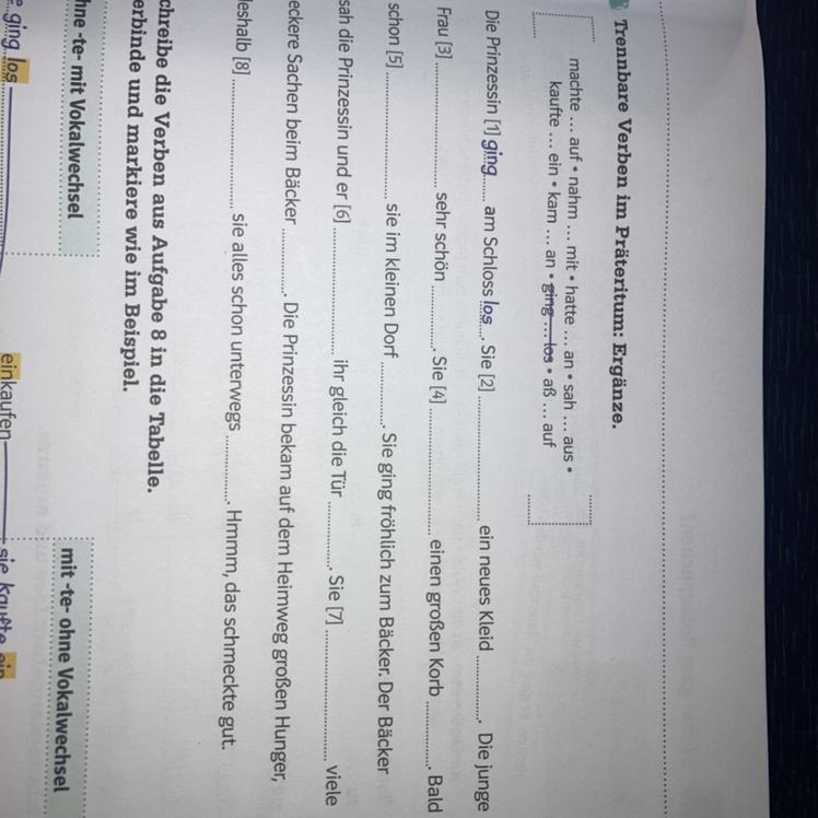 Trennbare Verben im Präteritum: Ergänze.
