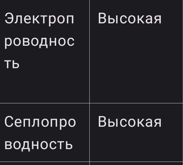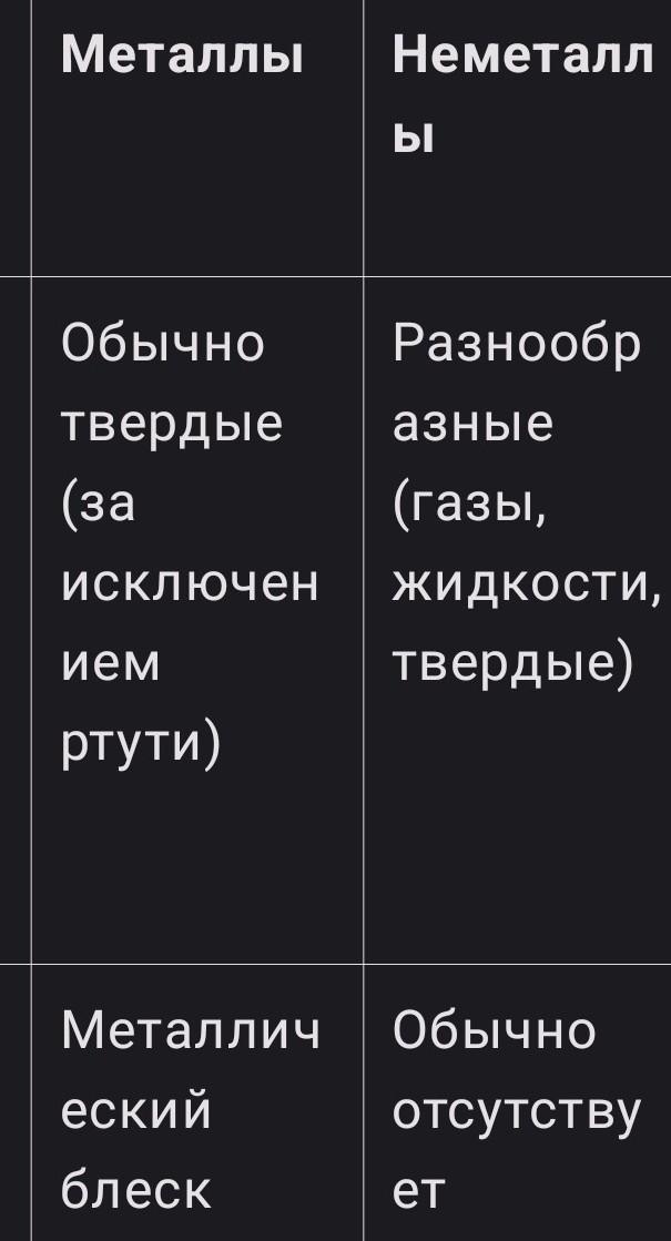 у Металлов Высокие. У неметаллов Низкие (для твердых) и нормальные (для газов и жидкостей) |