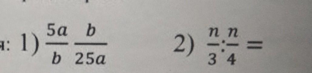 1) (5а/b) • b/(25a) = (5a • b)/(b • 25a) = (1 • 1)/(1 • 5) = 1/5;