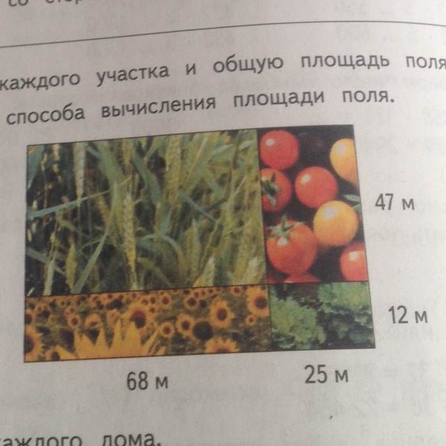 найдем ширину полей салата и помидор 47+12=59 м
