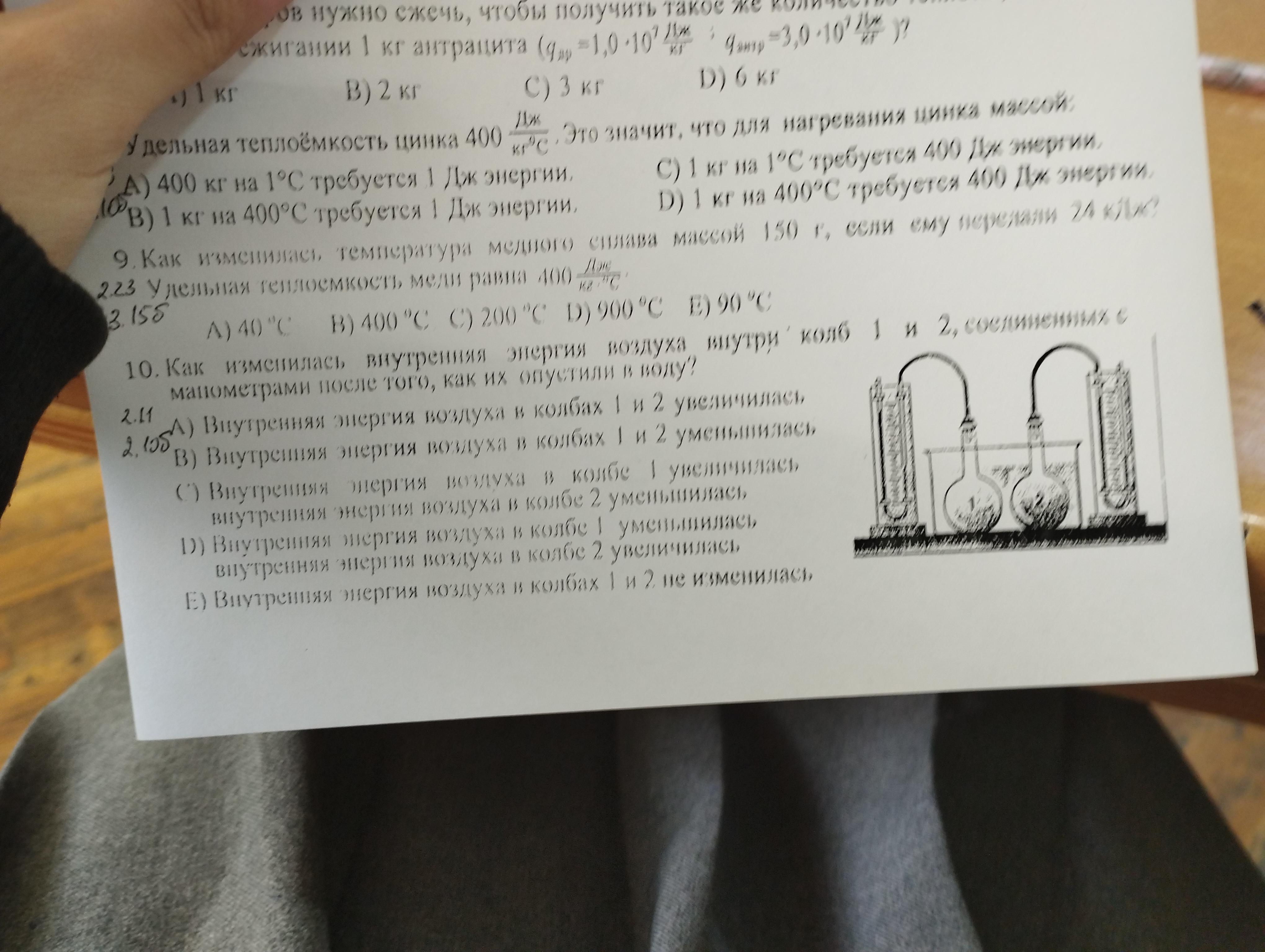 Как изменилась внутренняя энергия воздуха внутри куб 1,2 Соединённых с мапометрами после того как их отпутстили в воду