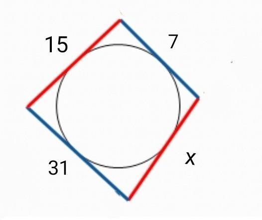 Срочно!! Три послідовні сторони описаного чотирикутника 7 см 15 см 31 см . Знайти четверту сторону