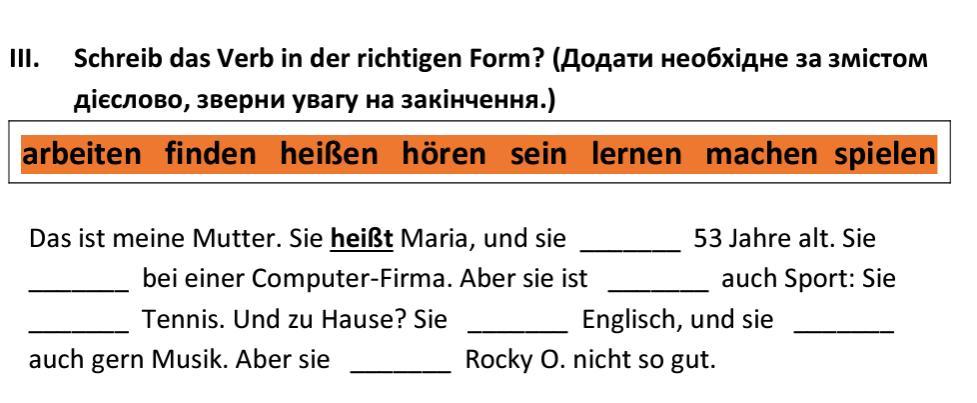 sein, arbeiten, machen,spielen, lernen, hören, heißen