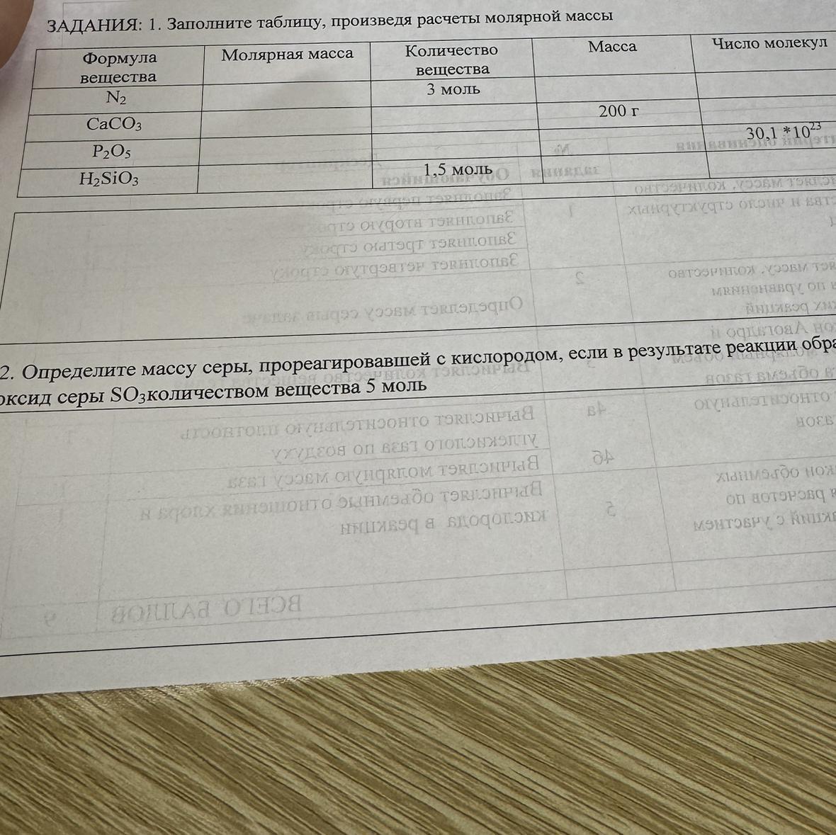 ЗАДАНИЯ: 1. Заполните таблицу, произведя расчеты молярной массы