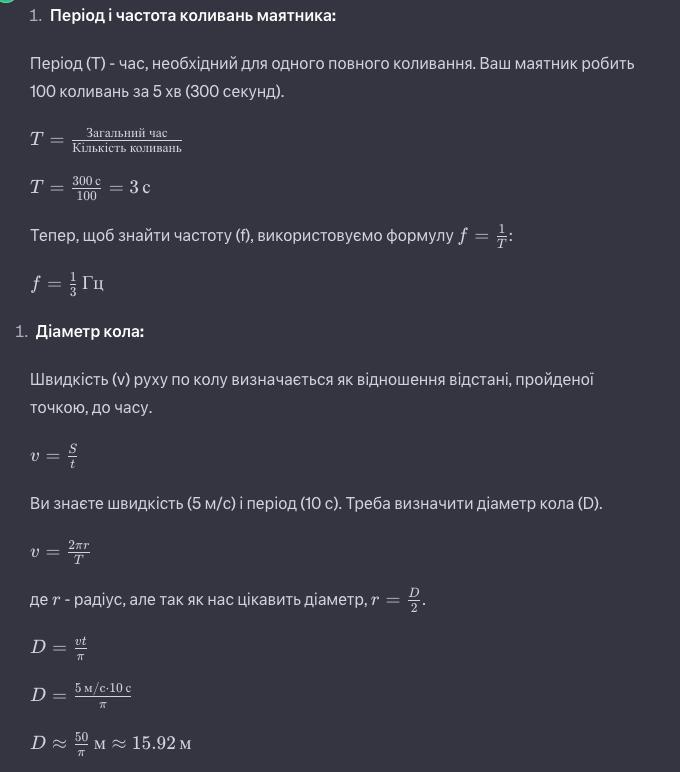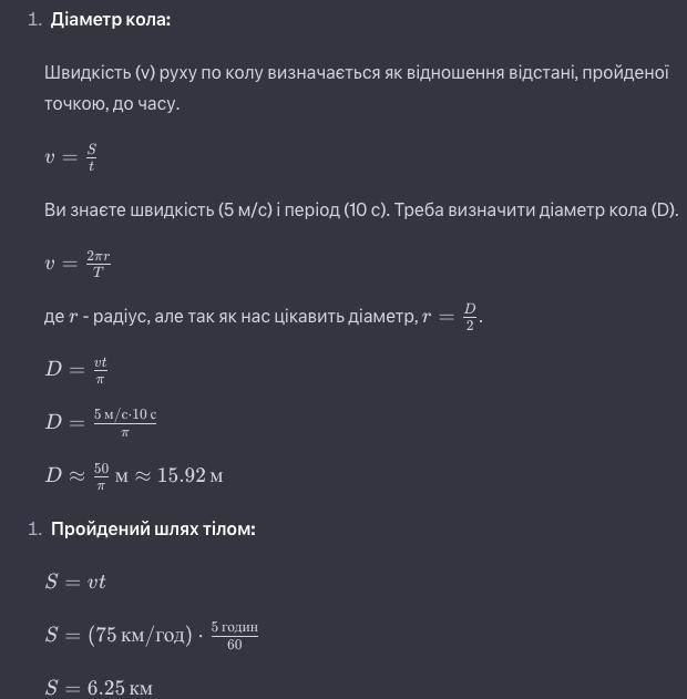 2)Швидкість руху точки по колу 5 мс. Знайти діаметр кола, якщо період руху 10 с.