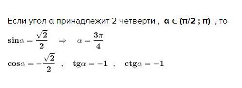 Если угол α принадлежит 2 четверти , α ∈ (π/2 ; π) , то