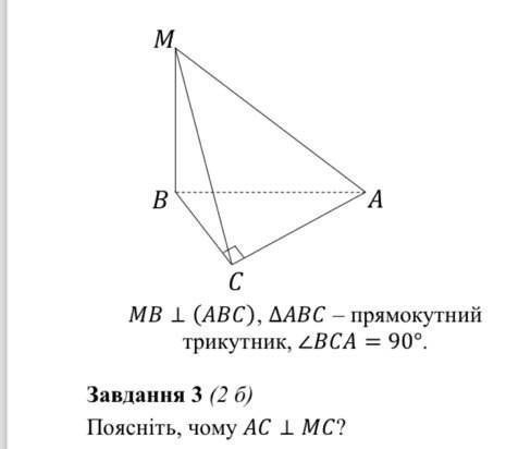 МС перпендикулярно АС, за теоремою о трьох перпендикулярах.