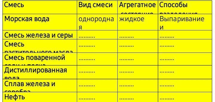 смесь растительного маслаи воды:неоднородная, жидкое,отстаивание