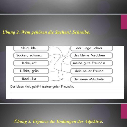 3. Das grüne T-Shirt gehört dem jungen Lehrer.