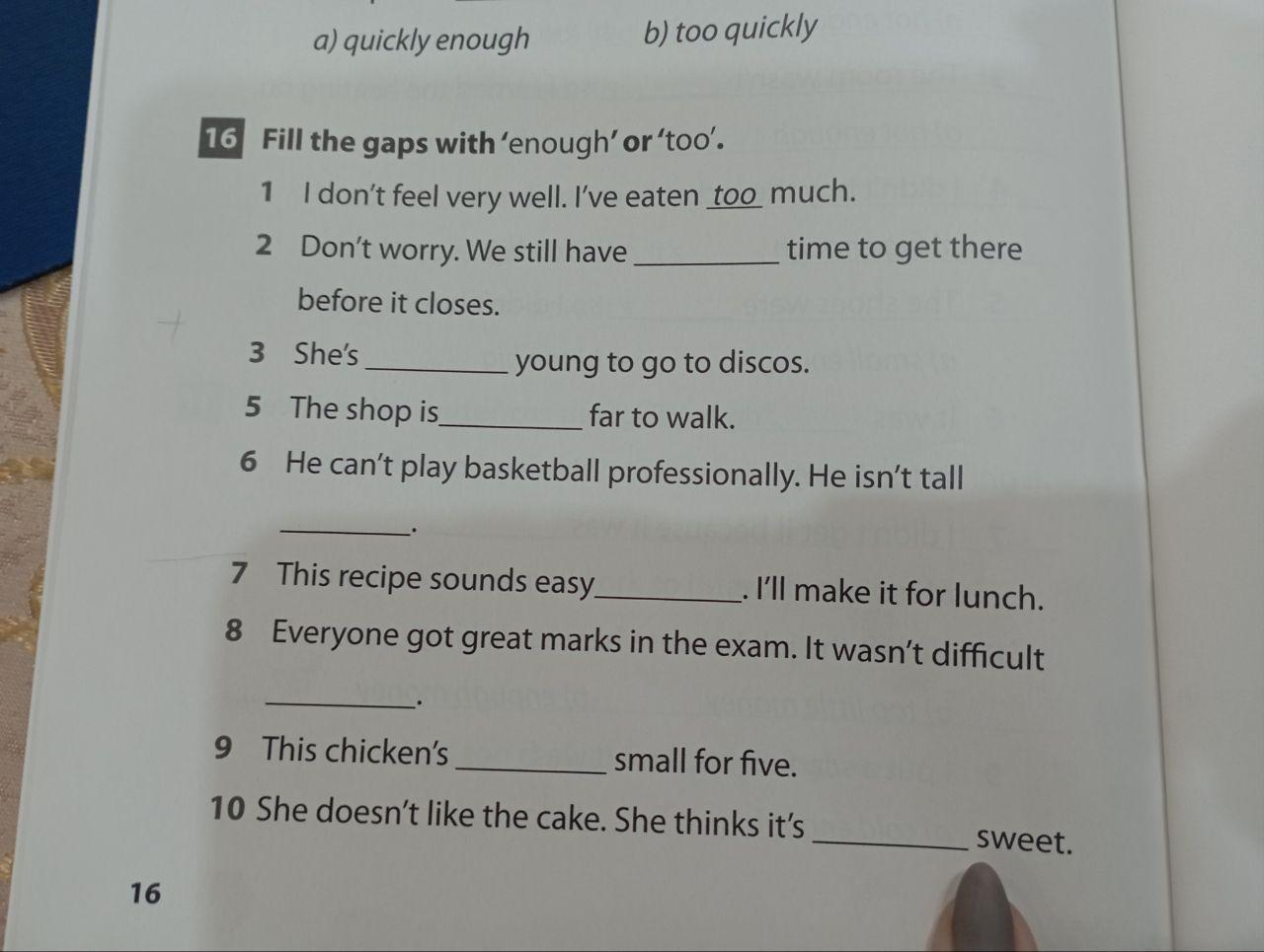 7. Everyone got great marks in the exam. It wasn't **too** difficult.