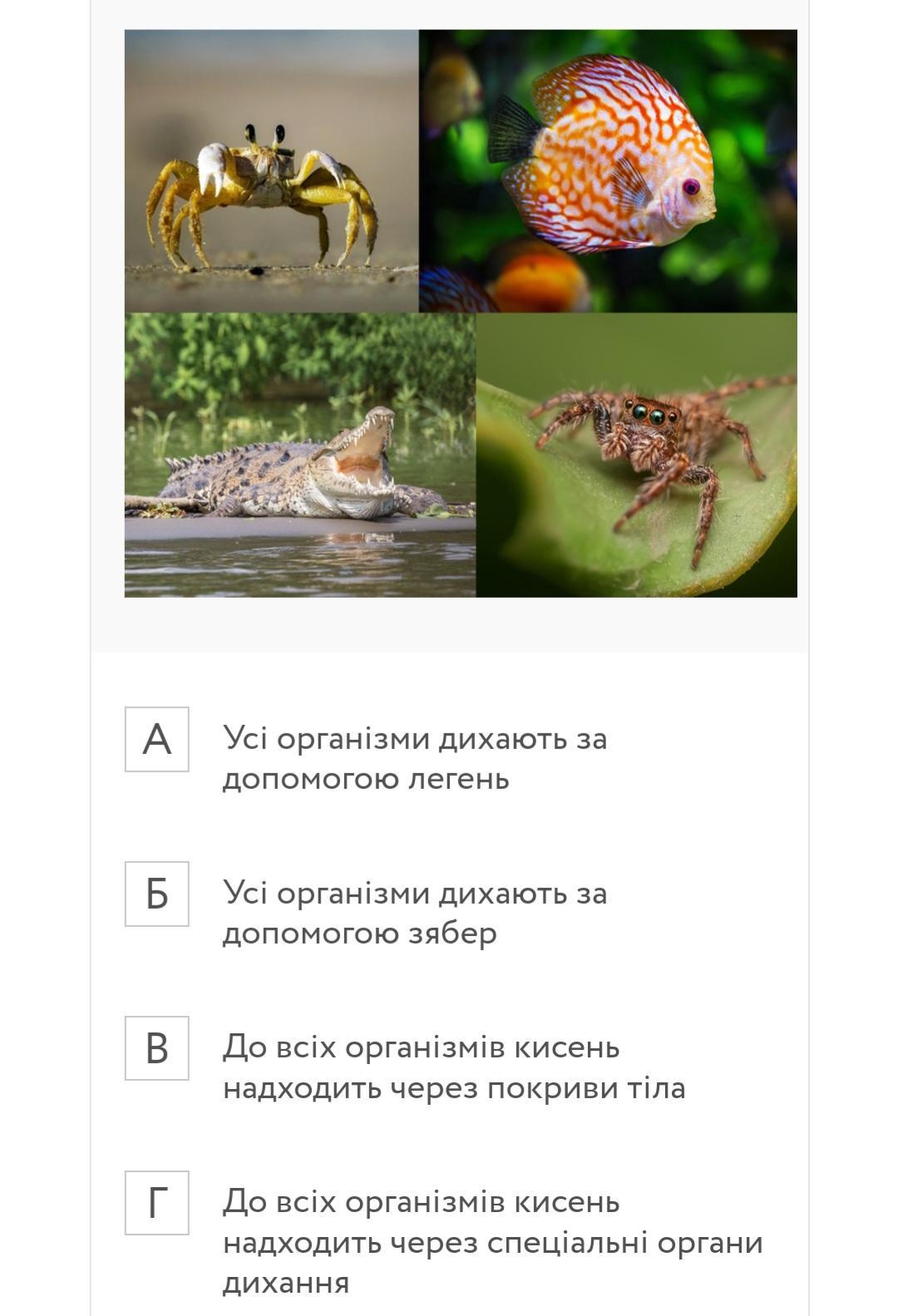 У крабів зябра, у риб теж, у крокодила є ніздрі, а у павука є дихальний отвір знизу
