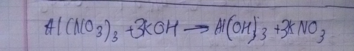 Al(NO3)3+3KOH=3KNO3+Al(OH)3(осадок)