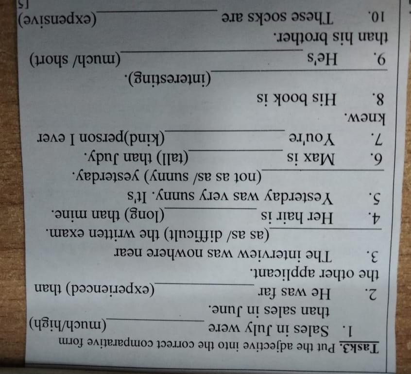 5. Yesterday was very sunny. It's **not as sunny as** yesterday.