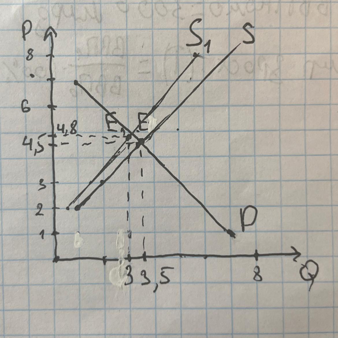 Qd1=0,8*(P-1)=0,8P-0,8-попит зменшився на 20%