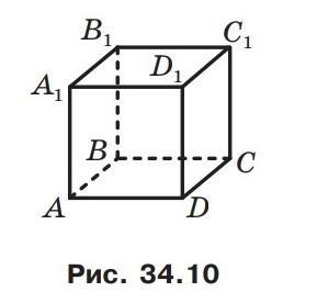 Дано куб ABCDA1 B1 C1 D1 (рис. 34.10). Назвіть грані куба, до яких перпендикулярна пряма: 1) AA1 ; 2) AD