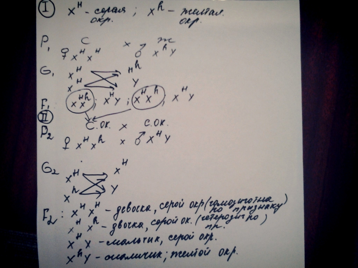 4.У дрозофилы рецессивный ген желтой окраски тела сцеплен с полом. В лаборатории получено потомство от скрещивания гомозиготной серой окраски и желтого самца. Серая самка из этого потомства в свою очередь