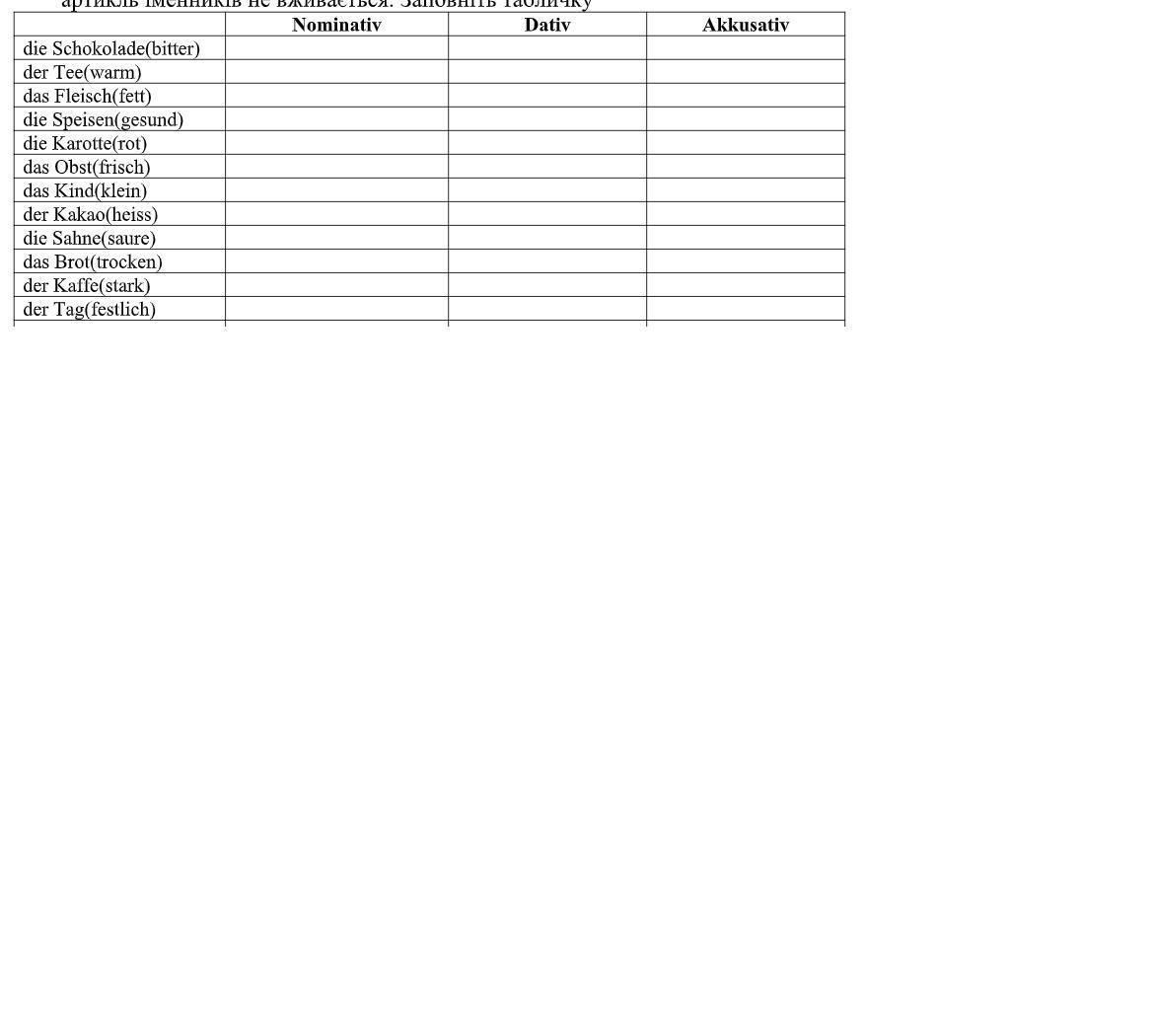 Dativ: der-dem, die-der, das-dem. Pl.den