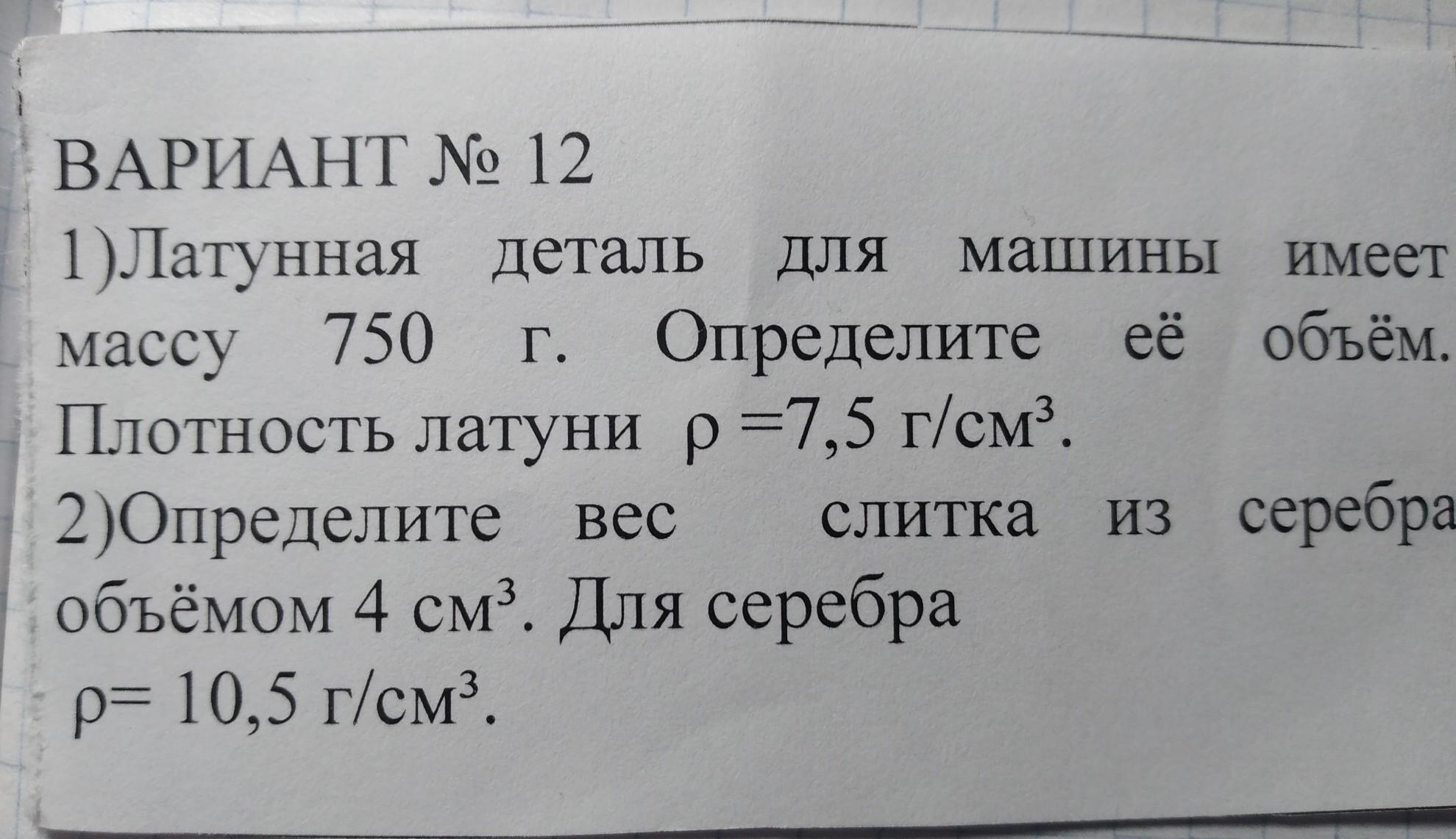 1)Латунная деталь для машин имеет массу 750г. Определите её объем.
