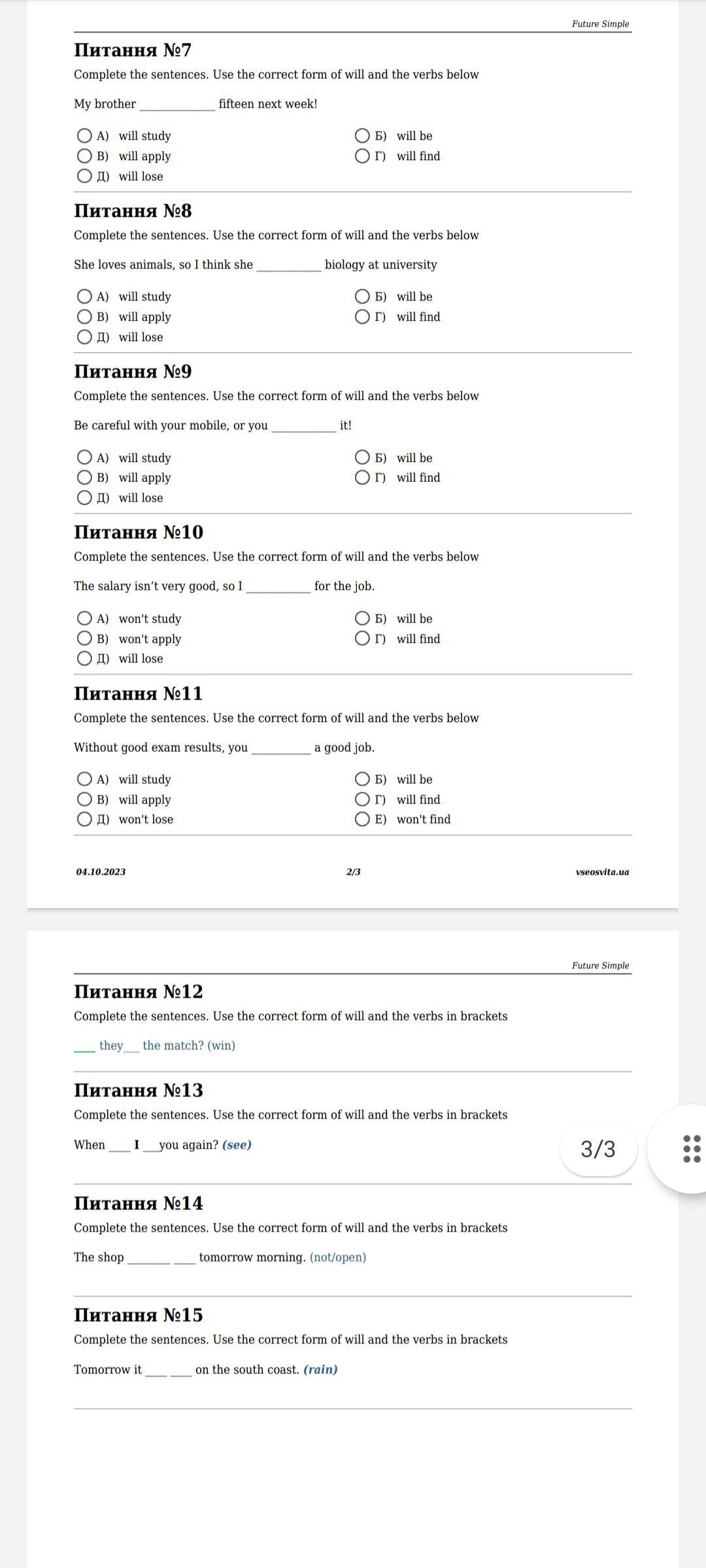А 9,10,11,12,13,14,15 рішенія