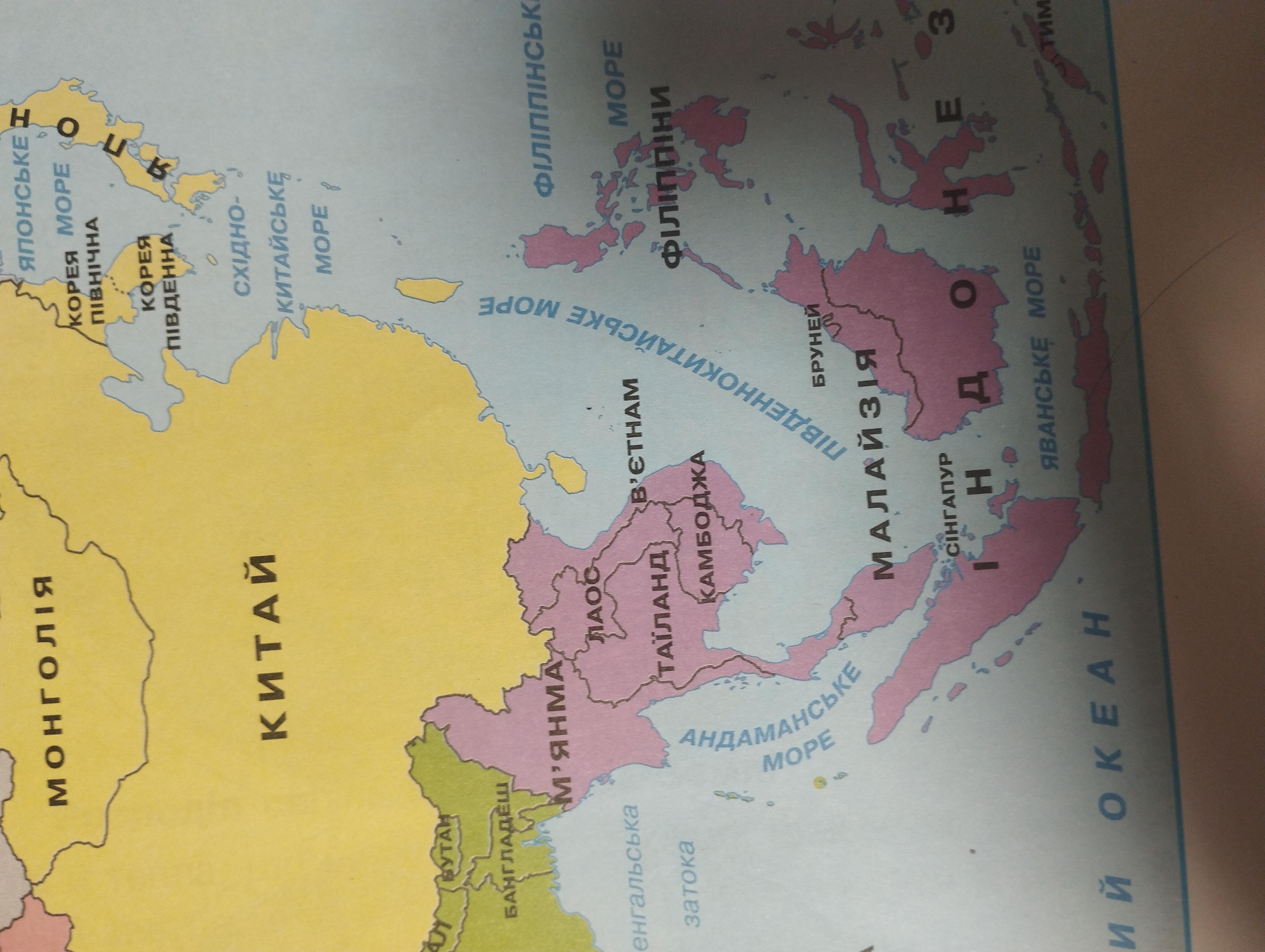 Ответ:Ось карта, напиши де Малайзія, та сусідні країни, нагадую, що писати об'єкти чорною ручкою, а водні об'єкти-синьою!
