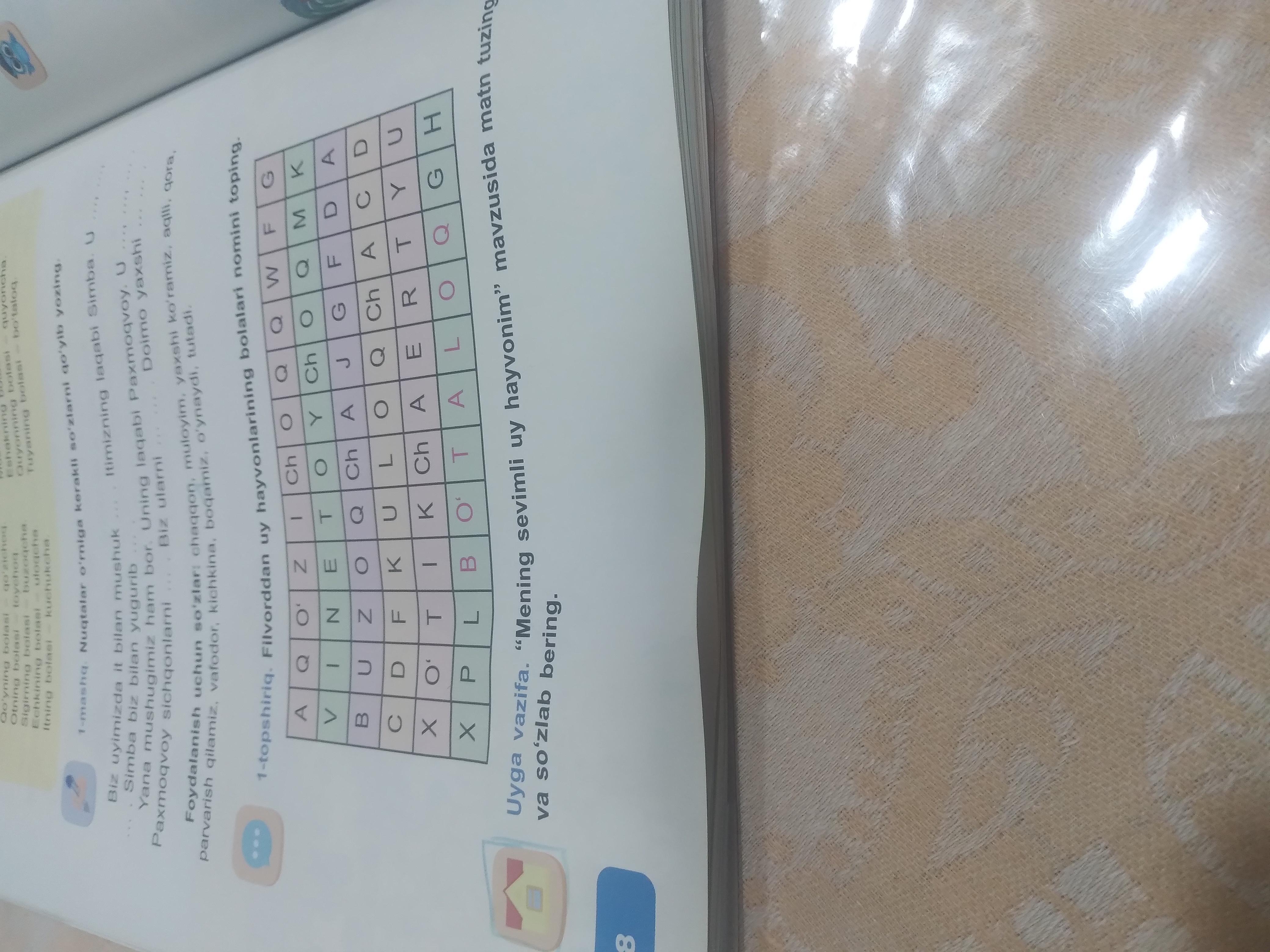 Uyga vazifa."Mening sevimli uy hayvonim" mavzudagi matn tuzing va so'zlab bering.