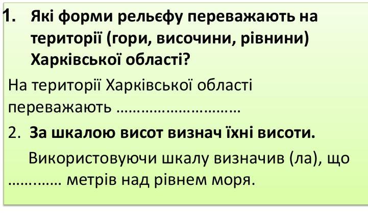1 На території Харківської області переважаютьрозташована на межі степової і лісостепової природних зон. Клімат помірноконтинентальний, переважають чорноземні ґрунти. Ліси в регіоні — переважно дубові і соснові. Фауну представляють близько 340 видів тварин.