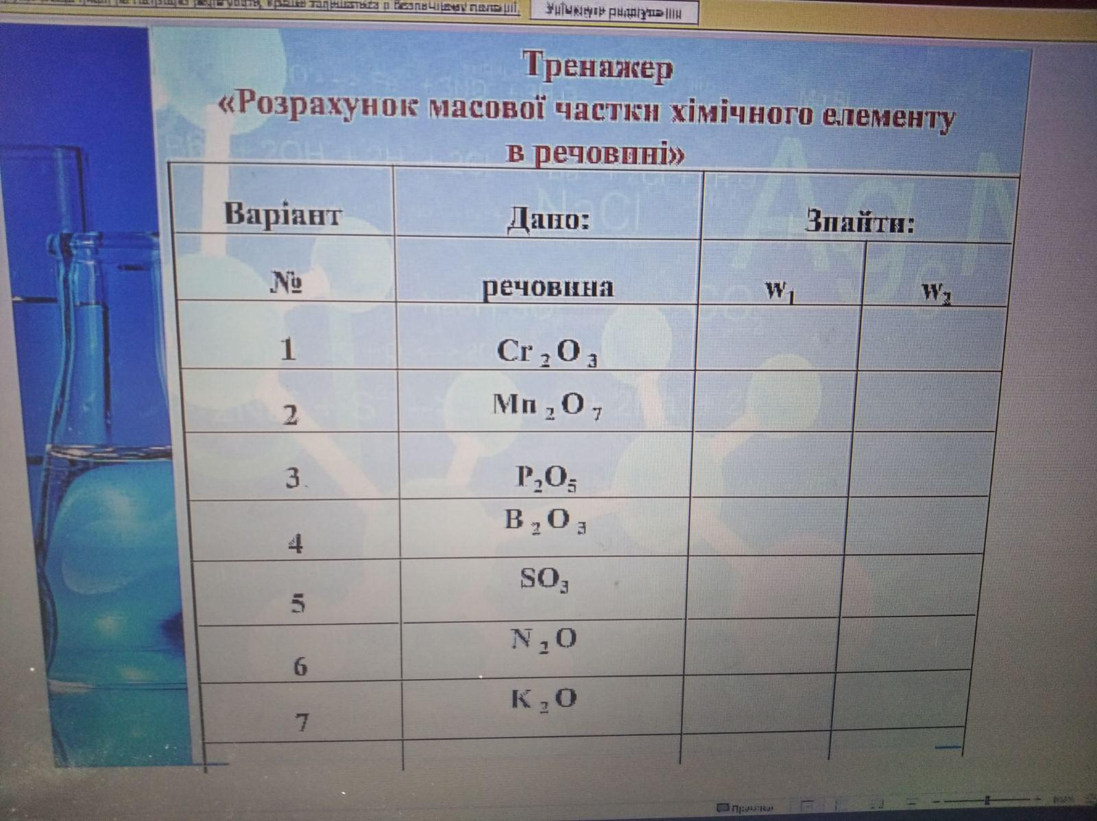 1)Розрахунок відносної молекулярної маси Cr2O3
