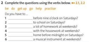 Ответ: 1- get up, 2- go, 3- do, 4- help, 5- be, 6- practise.