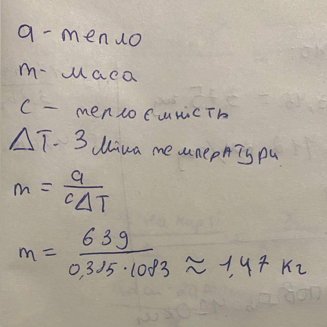 m = Q/λ = 639000/210000 = 3 кг
