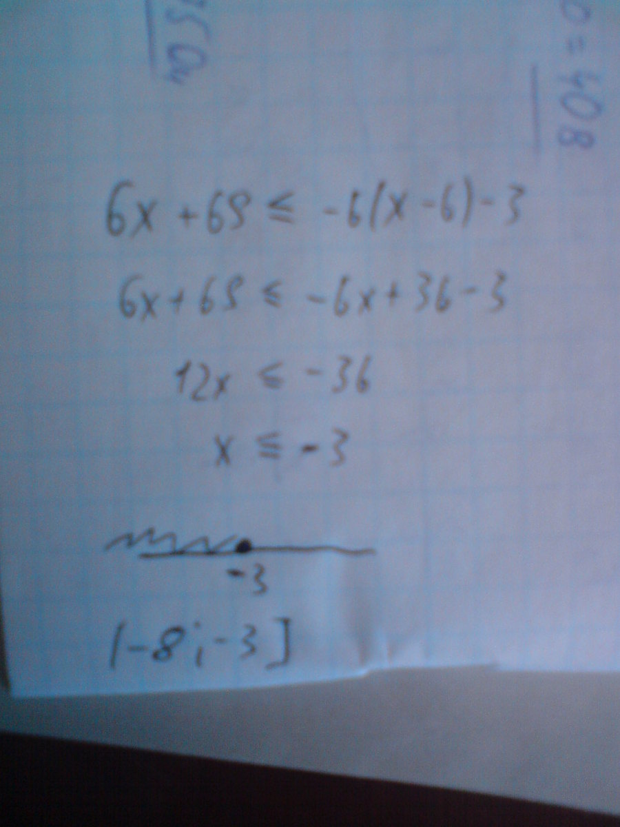 6X + 69 ≤ - 6 * ( X - 6 ) - 3