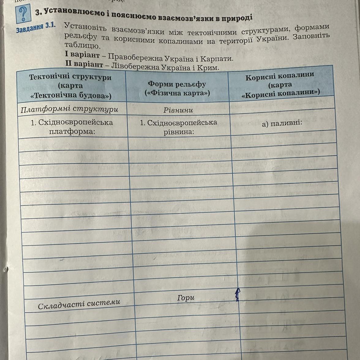 завдання 3.1. Установіть взаємозв'язки між тектонічними структурами, формами