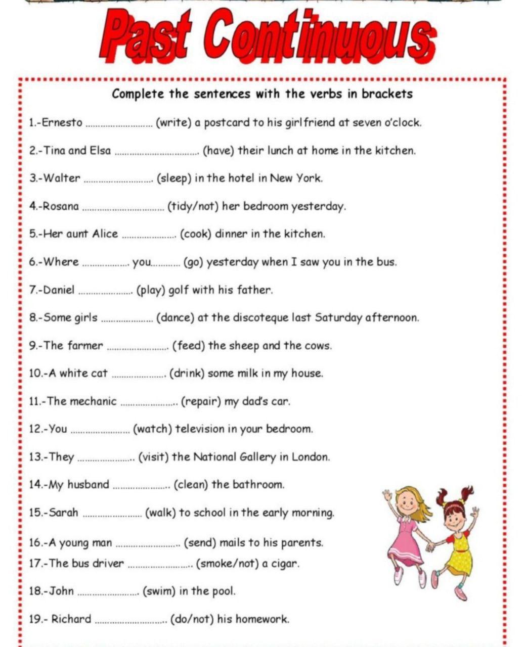 1. Ernesto **wrote** a postcard to his girlfriend at seven o'clock.