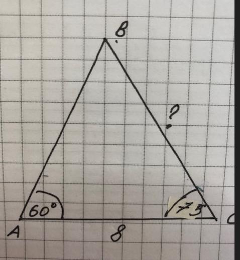 кут В=180°-(60°+75°)=180°-135°=45°