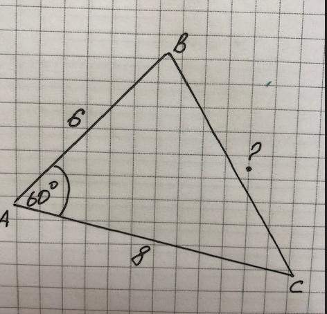 CB² = 36 + 64 - 2*6*8*1/2 = 100 - 48 = 52