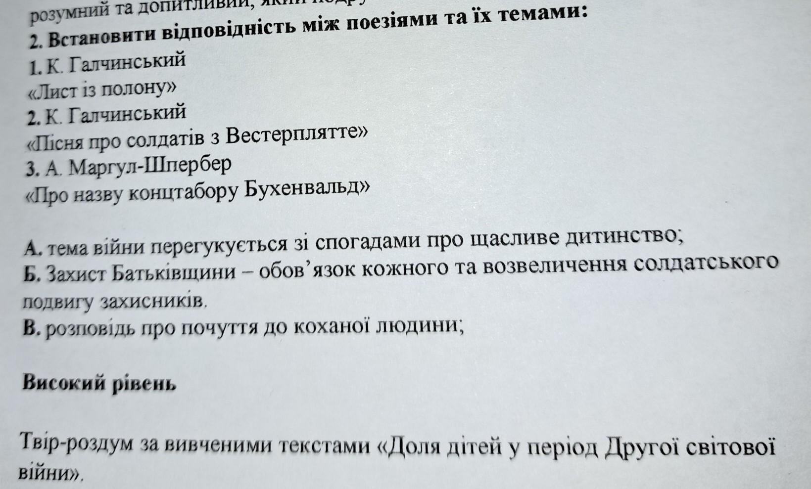 2- А. тема війни перегукується зі спогадами про щасливе дитинство;