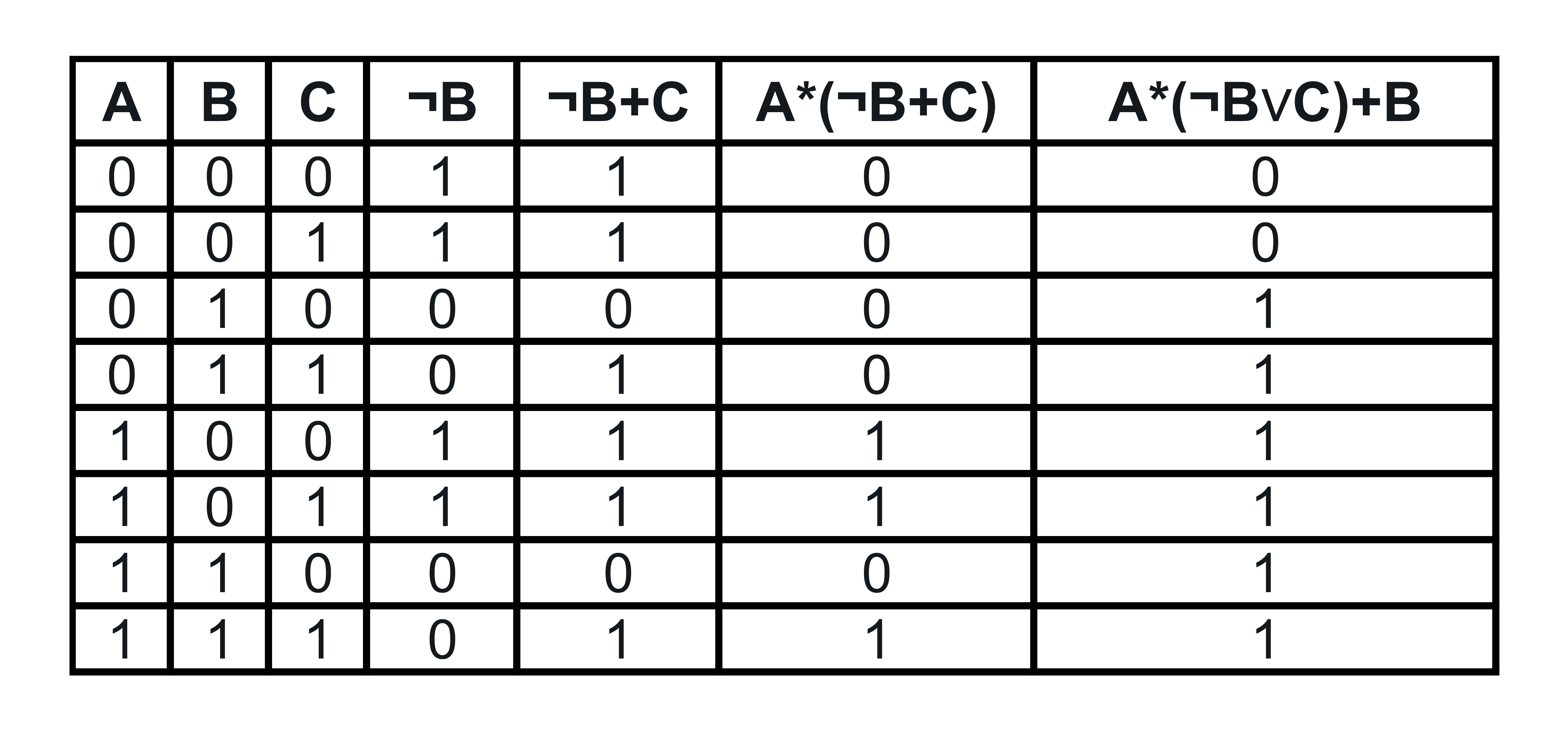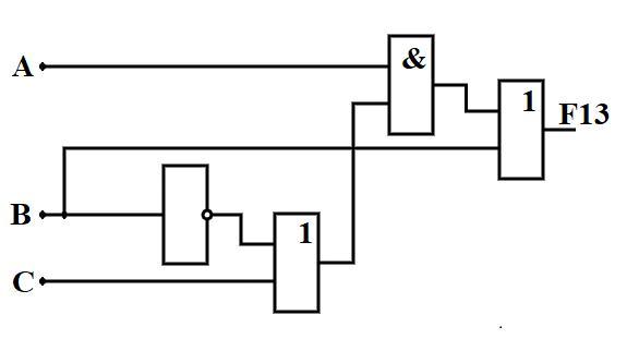 Постройте таблицу истинности и логическую схему, соответствующие логической функции: F13 = A · (¬B + C) + B.