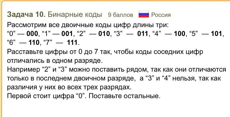Расставьте цифры от 0 до 7 так, чтобы коды соседних цифр