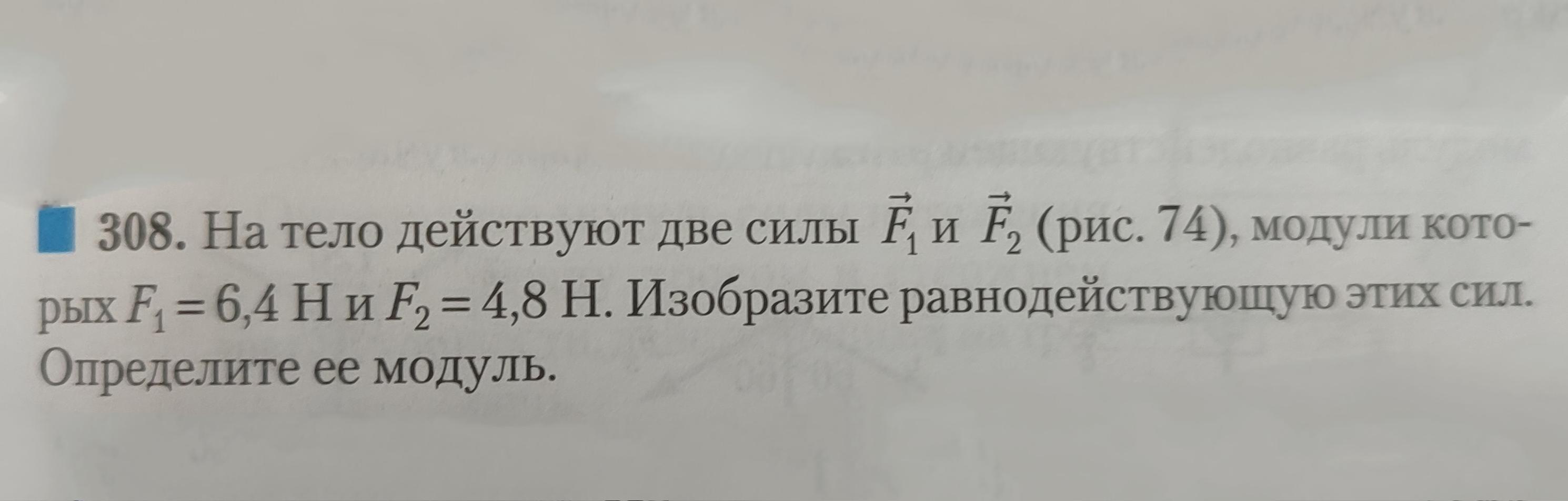 При угле в 90 градусов по теореме Пифагора считаешь гипотенузу F= корень из 6,4^2+4,8^2= 8Н