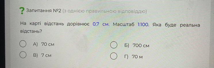 70 см А, так как 0.7 см 1:100 то 7 см1:10 то 70 см 1:1