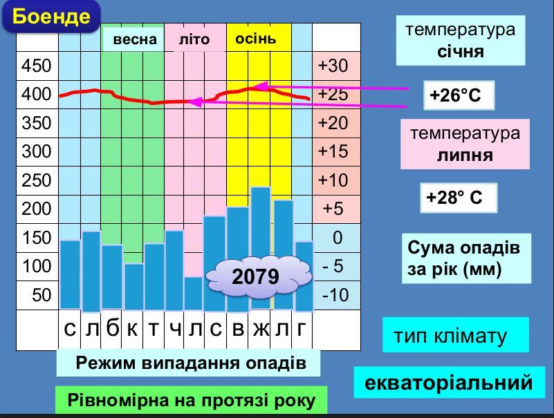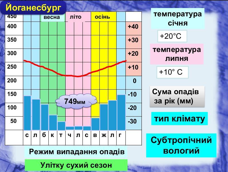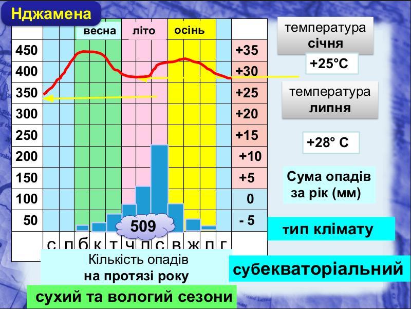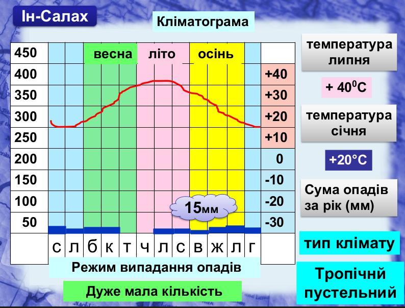 боенде тип клімату екваторіальний, нджамегна тип клімату субекваторіальний, ін-салах тип клімату тропічний пустельний, йоганесбург тип клімату субтропічний вологий