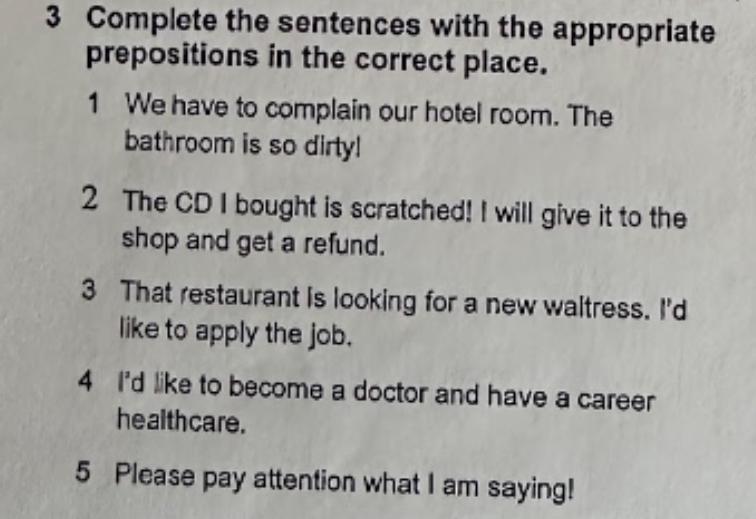 Complete the sentences with the appropriate prepositions in the correct place.