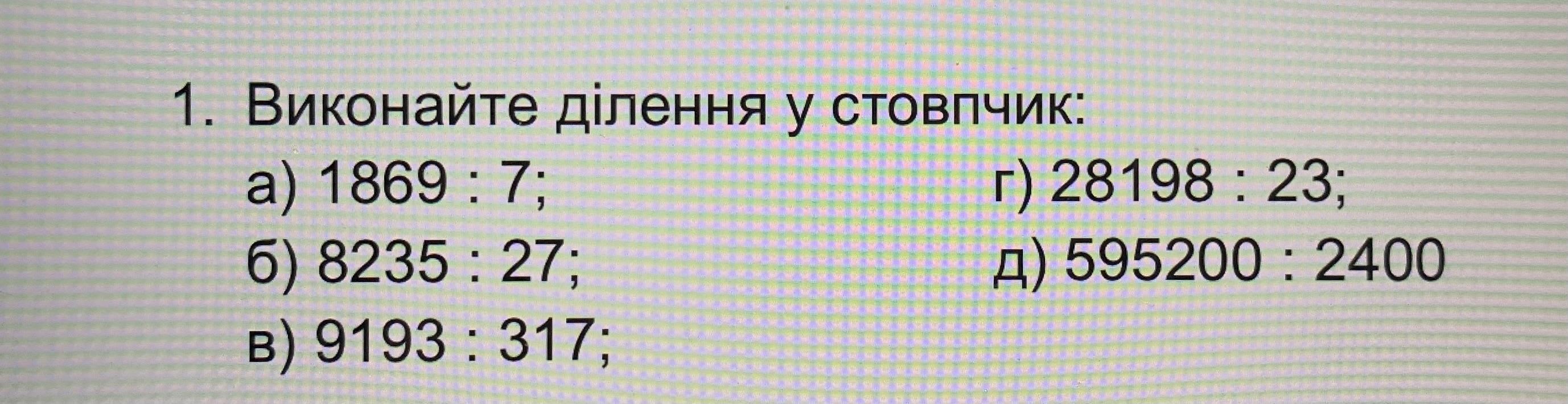 в стопчик просто множ число яке в ответи наприклад 1869:7=2*7=14 отже віднімаєш 18-14.