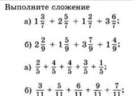 б) 2. 2/9 +1. 5/9 + 3. 7/9+.4/9=(2+1+3+1)+(2/9+5/9+7/9+4/9)=7+18/9= 7.18/9