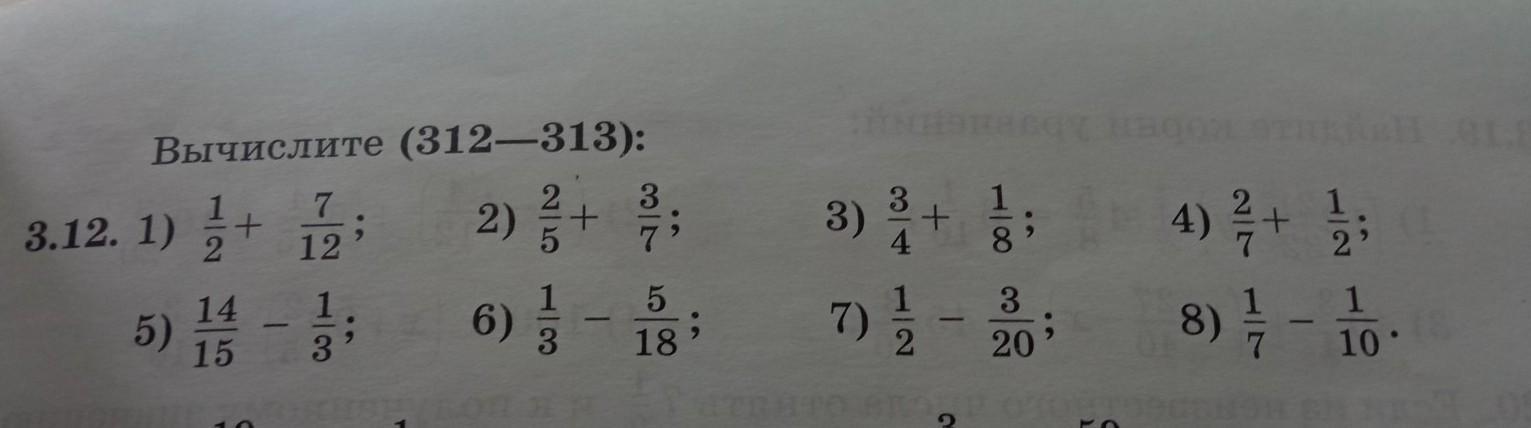Вычислите (312-313): 3.12. 1) + 1/2 14 1 5) //-// 15 3 2) 6) colm crito - - 3 7 5 18 3) 34 12 7) 1/1/2- 1 8 3 20 4) 8) PIC