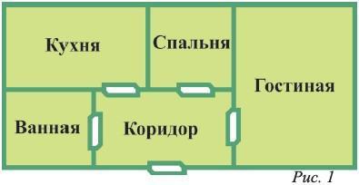 3.(6б) На рис.1 зображено план квартири. Масштаб 1 : 250. Знайдіть площу кожної кімнати і загальну площу квартири. Кухня Ванная Спальня Коридор Гостиная Puc. I