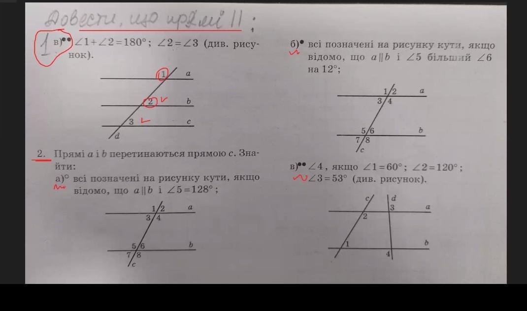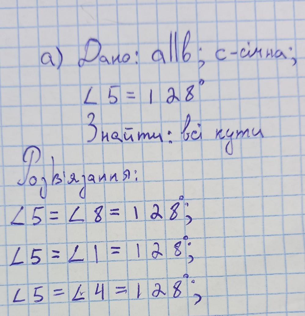2. Прямi а іi ь перетинаються прямою с. Зна- йти: Mu a) всі позначені на рисунку кути, якщо вiдомо, що а||b i все пж