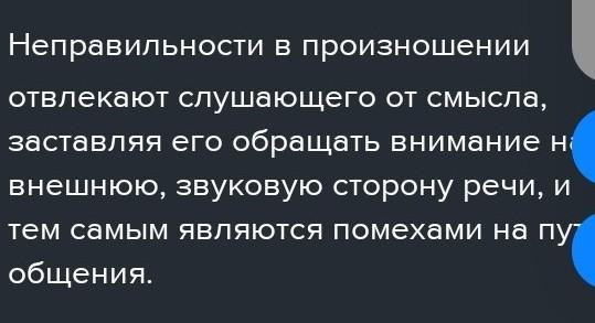 (1) Неправильности в произношении (2) заставляя его обращать внимание на внешнюю, (3) звуковую сторону речи, (4) и тем самым являются помехами в речевом об- щении (5) отвлекают слушающего от смысла.