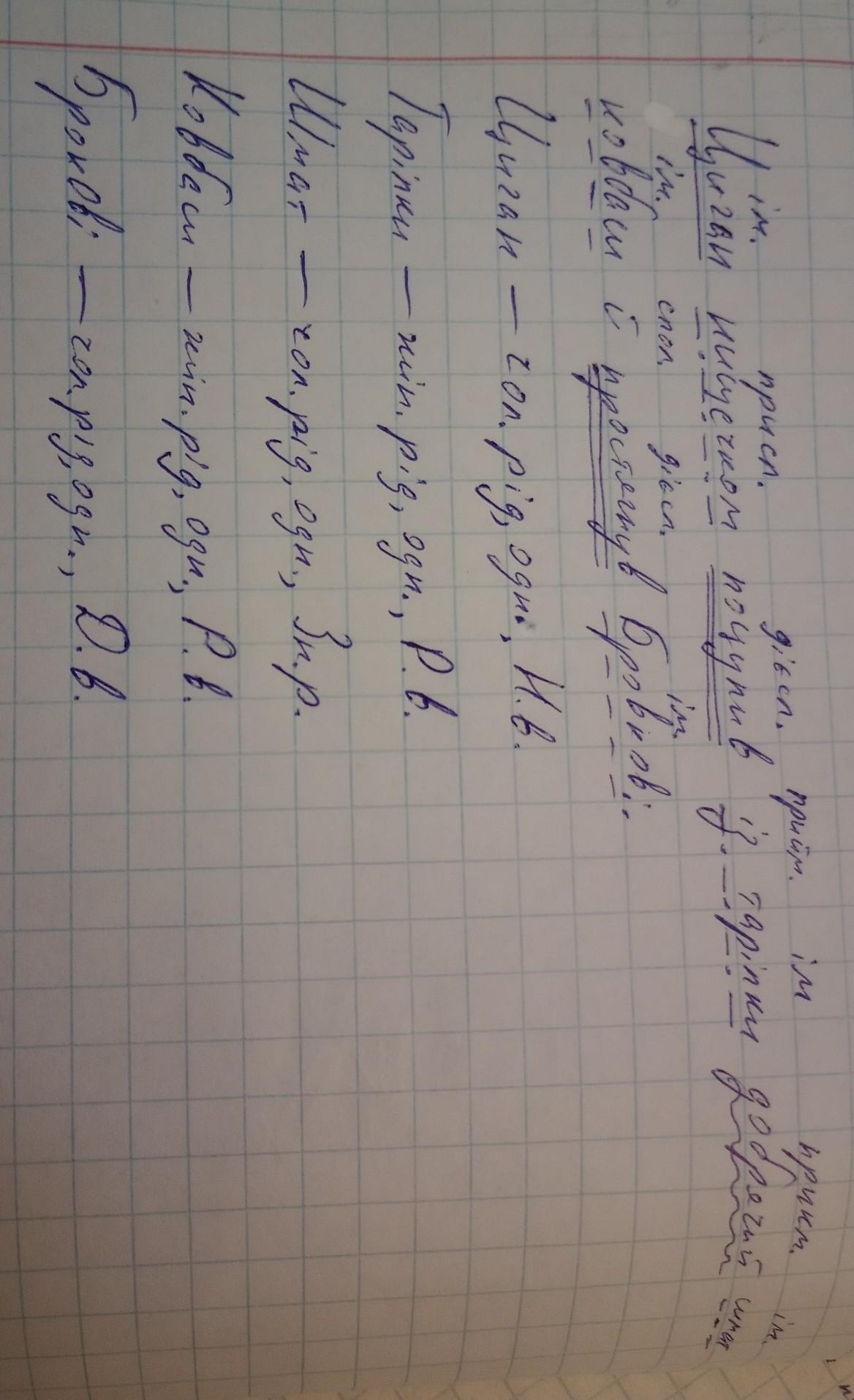 Списати речення. Зверху над словами надписати частини мови цих слів. Підкреслити члени речення. Виписати іменники. Визначити їх рід, число, відмінок.