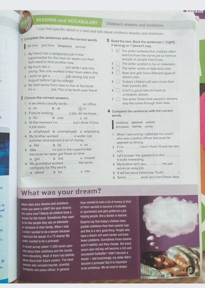 2 realistic, 3 definite, 4 ambitious, 5 survey, 5 princesses.